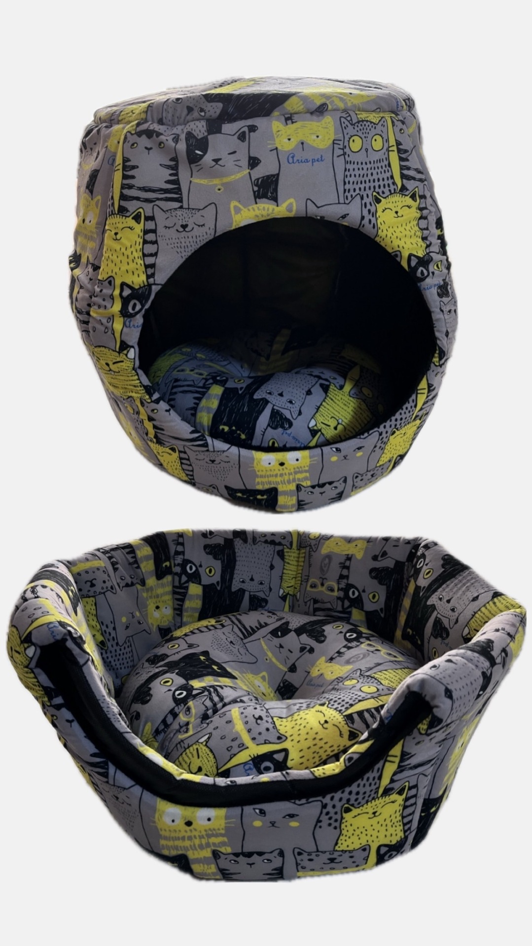 جای خواب دوحالته سگ و گربه زرد طوسی آریا پت Ariya Pet ابعاد 40×45×45