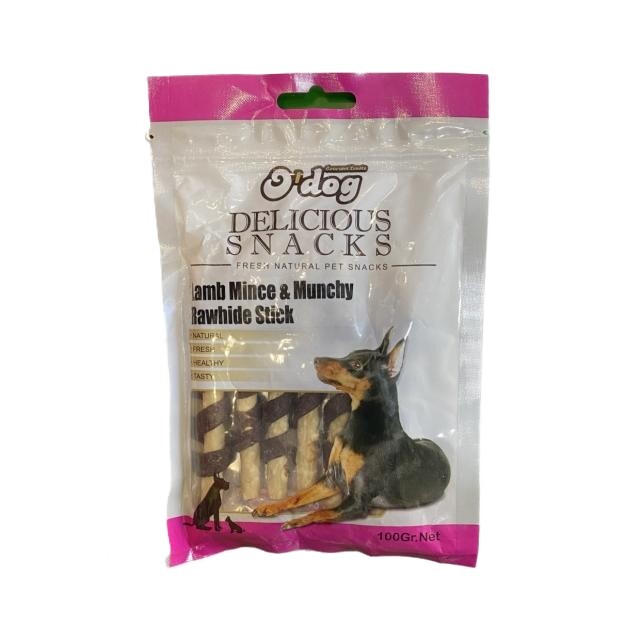 تشویقی سگ اوداگ مدل دورپیچ بره O'Dog lamb mince وزن ۱۰۰ گرم