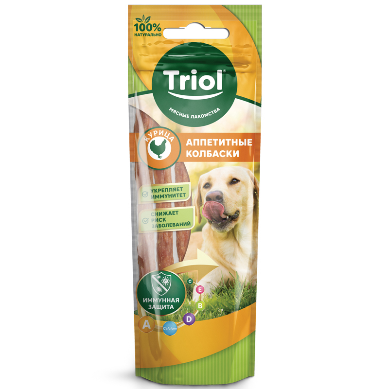 تشویقی سگ بالغ تریول مدل مدادی با طعم گوشت مرغ Triol Tasty Beef Sausages Dog Treat وزن 40 گرم