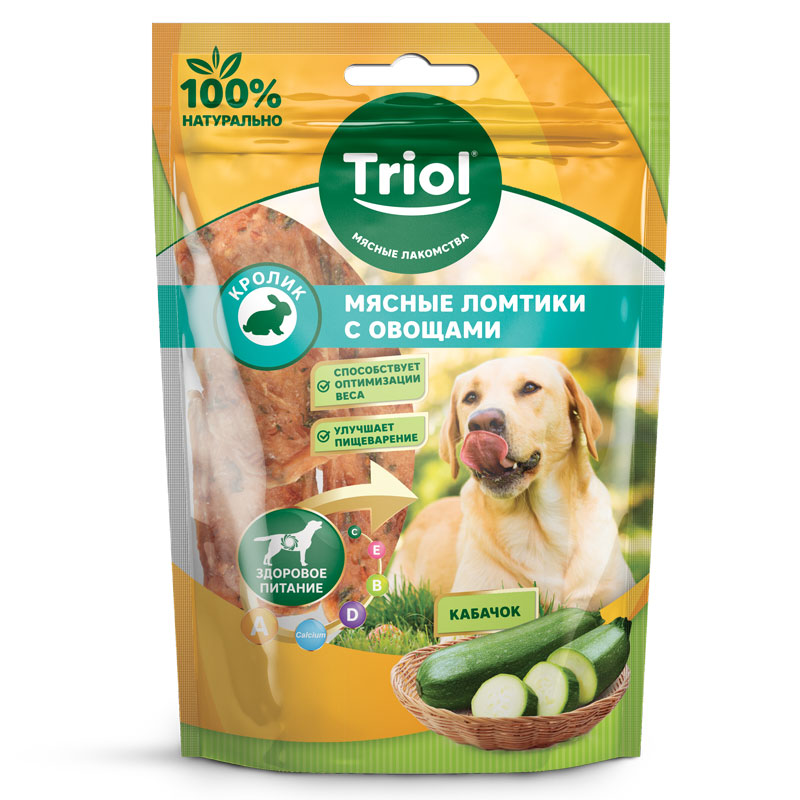 تشویقی سگ بالغ تریول مدل اسلایش با طعم گوشت خرگوش و کدو سبز Triol Rabbit and Zucchini Meat Slices for Dogs وزن 70 گرم