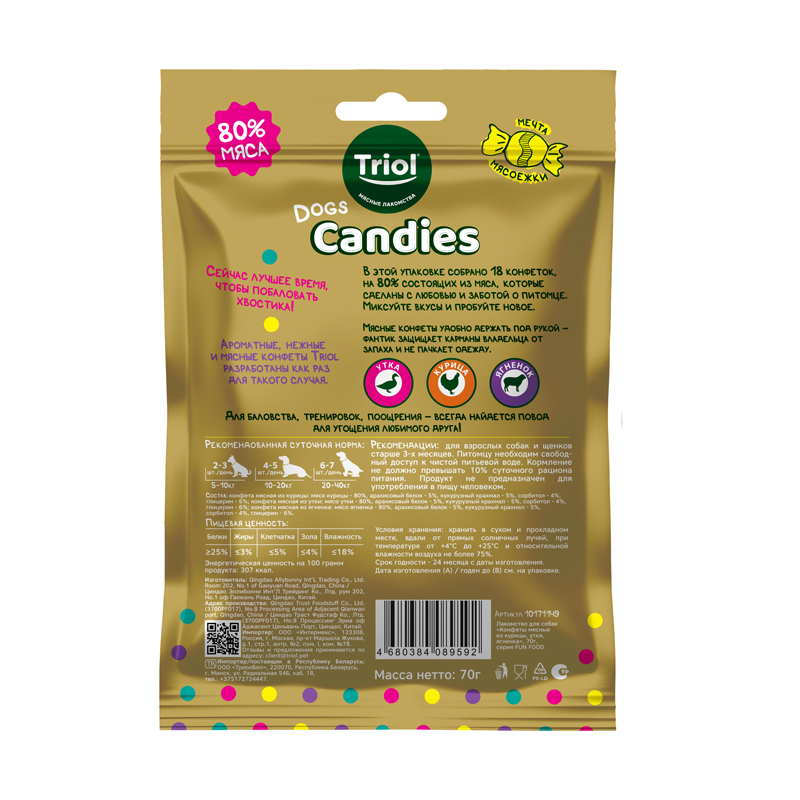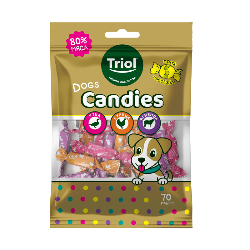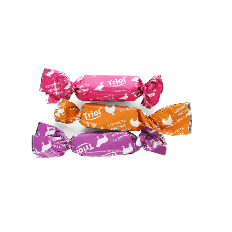 تشویقی سگ بالغ تریول مدل کندی طعم گوشت مرغ، گاو و اردک Triol Chicken, duck, and lamb meat candies وزن 70 گرم