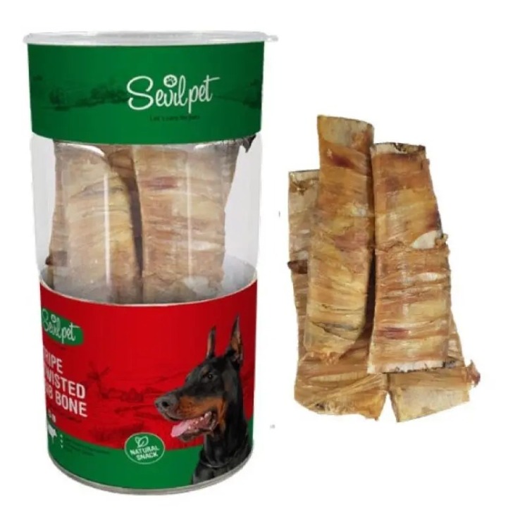 تشویقی دورپیچ سیرابی روی استخوان بزرگ سگ سویل پت Sevil Pet tripe twisted rib bone Dog Snack بسته 4 عددی