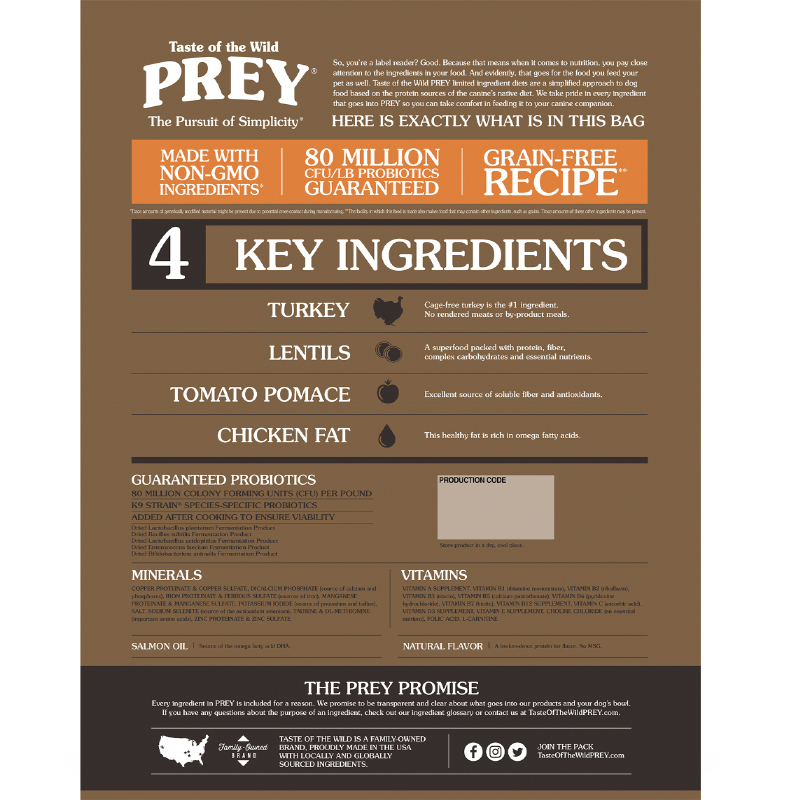 غذای خشک سگ تیست اف د وایلد مدل پری با طعم بوقلمون Taste Of The Wild Prey Limited Ingredient Recipe Dog Food وزن 11.4 کیلوگرم
