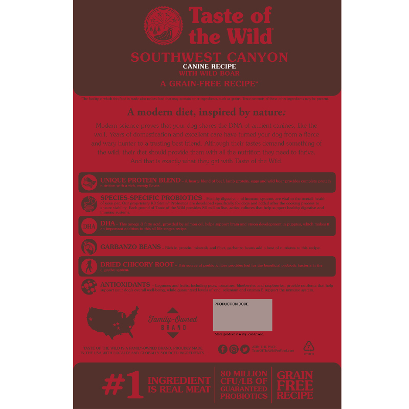 • غذای خشک سگ تیست آف د وایلد با طعم گراز وحشی Taste Of The Wild Southwest Canyon Canine Recipe Dog Food وزن 12.2 کیلوگرم