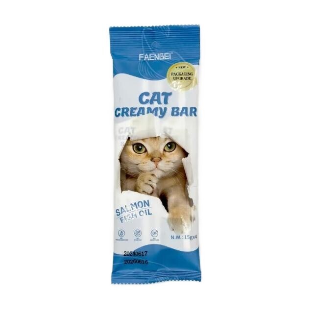 بستنی گربه فنبی طعم سالمون و روغن ماهی Faenbei creamy bar بسته بندی 4 عددی