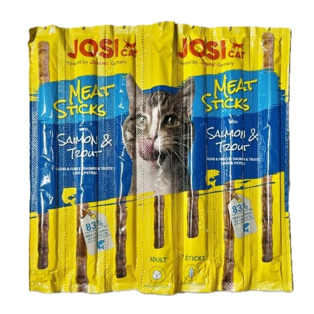 تشویقی مدادی گربه جوسی کت طعم ماهی سالمون و قزل آلا Josi Cat Meat Stick With Salmon and Trout بسته 7 عددی