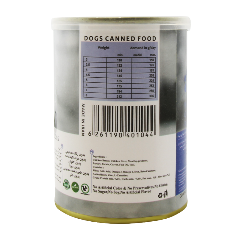 - حاوی گوشت خالص گوساله و مرغ
