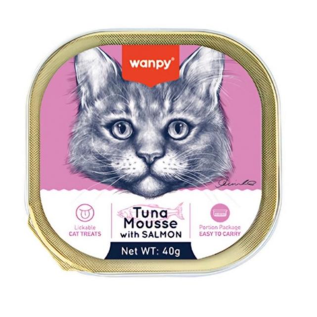 ووم گربه ونپی انگلیسی نویس با طعم ماهی تن و سالمون Wanpy Tuna Mousse With Salmon وزن 40 گرم