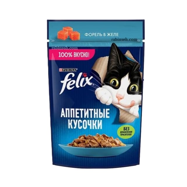 پوچ گربه فلیکس با طعم ماهی تن در ژله Felix Appetizing pieces Tuna in Jelly وزن 85 گرم