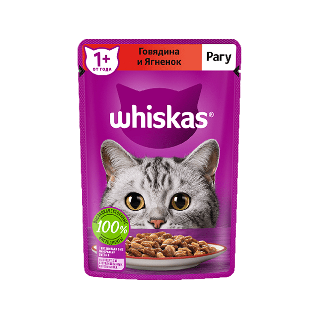 پوچ گربه با طعم گوشت گاو در ژله ویسکاس Whiskas Pure Delight With Beef in Jelly وزن 85 گرم
