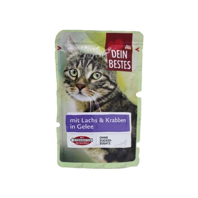 پوچ گربه دین بستس با طعم سالمون و خرچنگ Dein bestes Salmon and Crab وزن 100 گرم