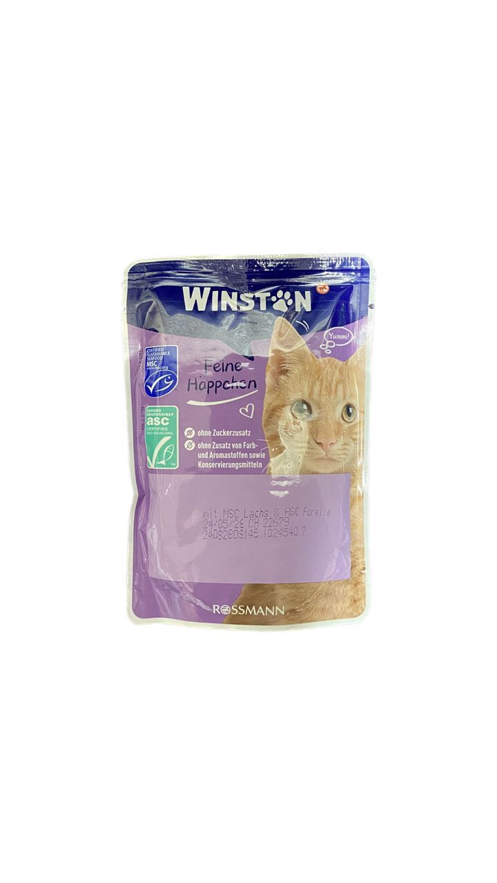 پوچ گربه بالغ وینستون طرح جدید طعم ماهی و قزل آلا Winston Adult وزن 100 گرم