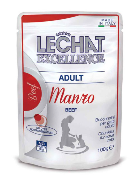 پوچ گربه لچت اکسلنس مدل بالغ با طعم گوشت گاو Lechat Excellence Adult Pouch Beef Cat Food وزن 100 گرم