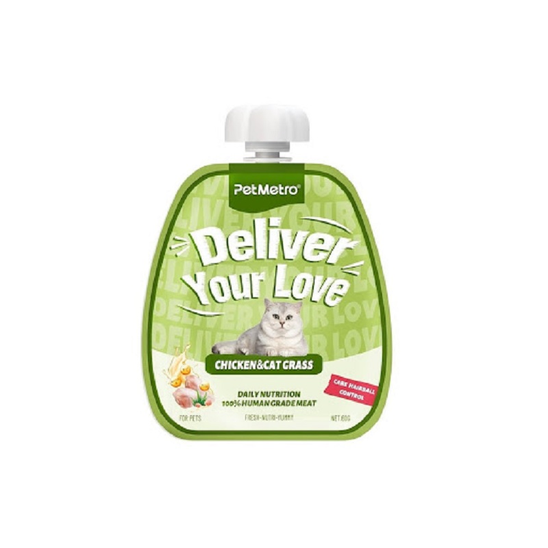 پودینگ غذای گربه پت مترو مدل آنتی هیربال طعم مرغ و علف گربه Pet Metro Chicken & Cat Grass وزن 60 گرم