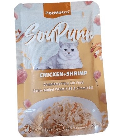 پوچ غذای گربه پت مترو با طعم مرغ و میگو Pet Metro Chicken & Shrimp وزن 75 گرم
