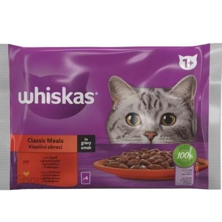 پوچ گربه ویسکاس با طعم گوشت گاو و مرغ Whiskas Cat Pouch بسته 4 عددی