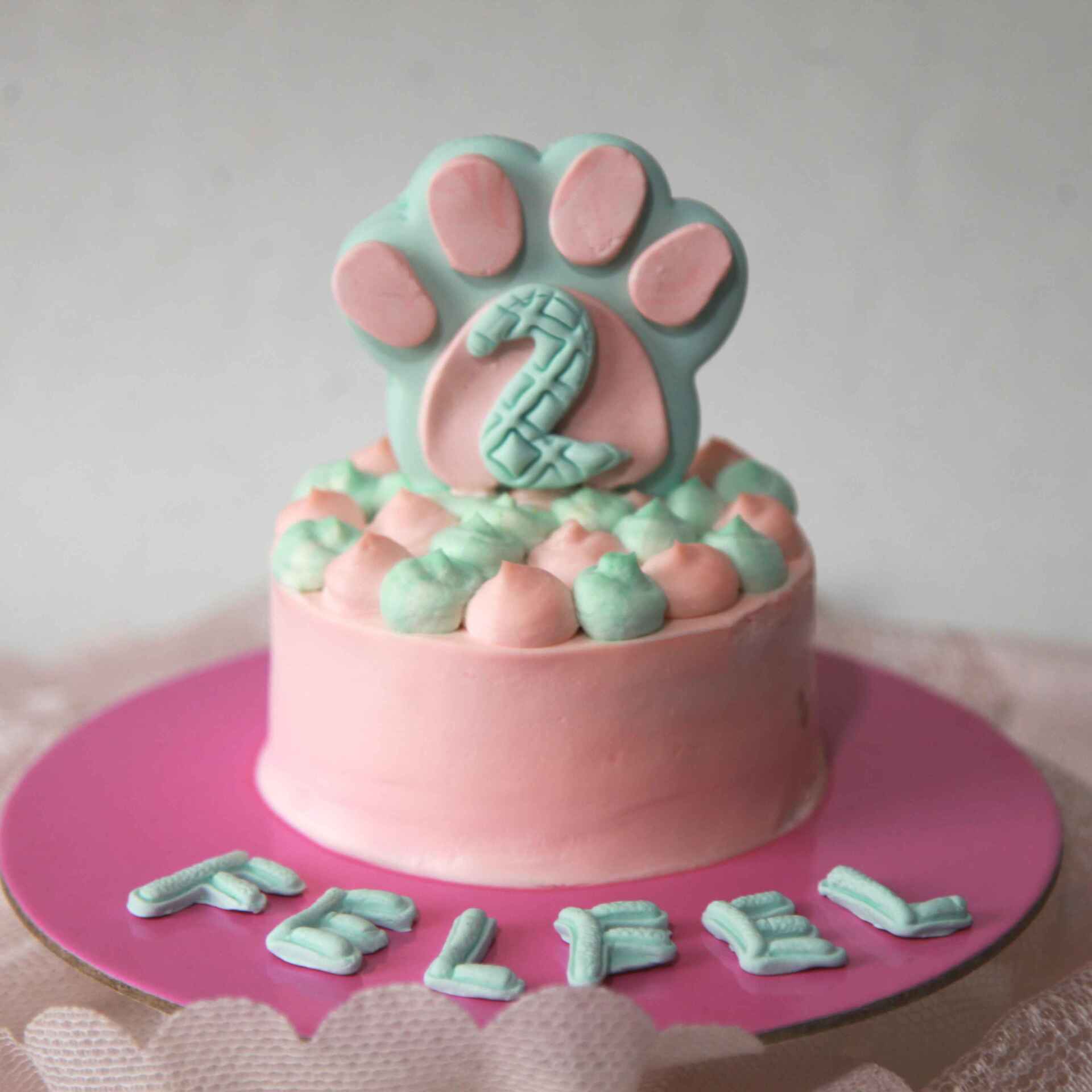 فوندانت تشویقی ها ، اسم پت و تزئینات روی سینی از جنس فوندانت خوراکی است، منتها