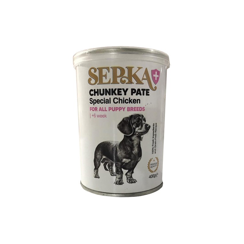 کنسرو توله سگ سپکا پته چانک طعم مرغ و سبزیجات Sepka وزن 400 گرم