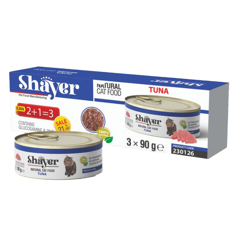 کنسرو غذای گربه با طعم ماهی تن شایر Shayer Natural With Tuna بسته 3 عددی