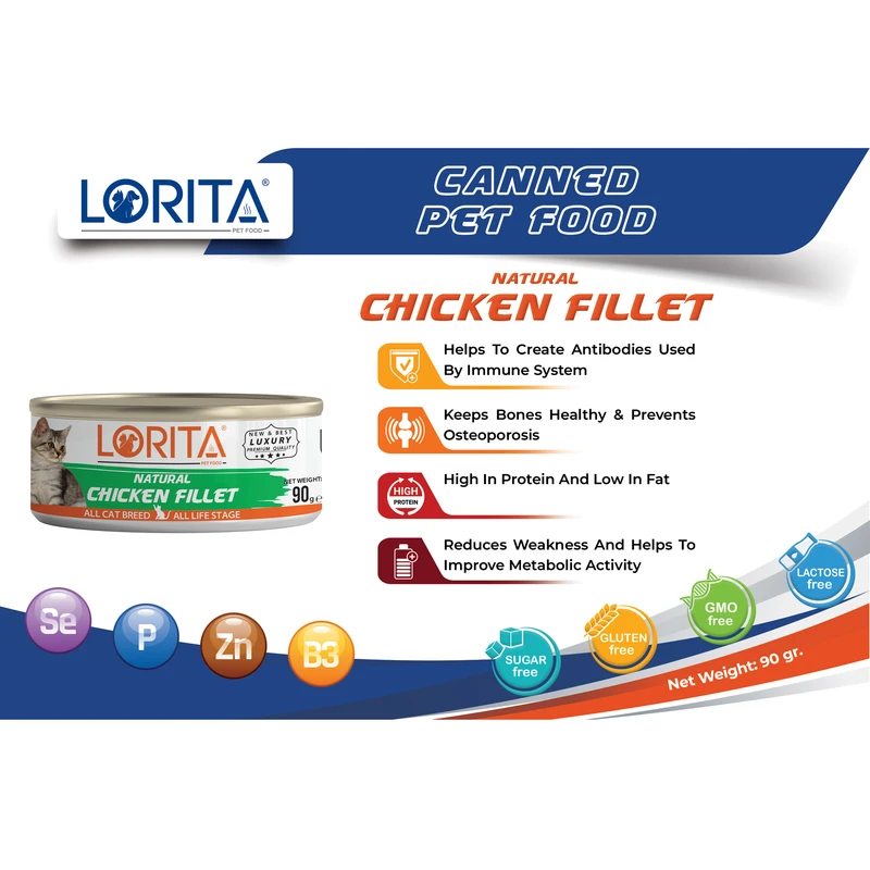 کنسرو غذای گربه با طعم فیله مرغ لوریتا Lorita Chicken Fillet وزن 90 گرم