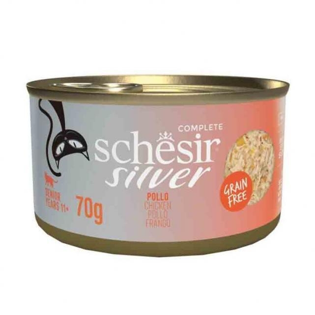 کنسرو گربه شسیر مدل سیلور با طعم مرغ Schesir Silver with Chicken وزن ۷۰ گرم