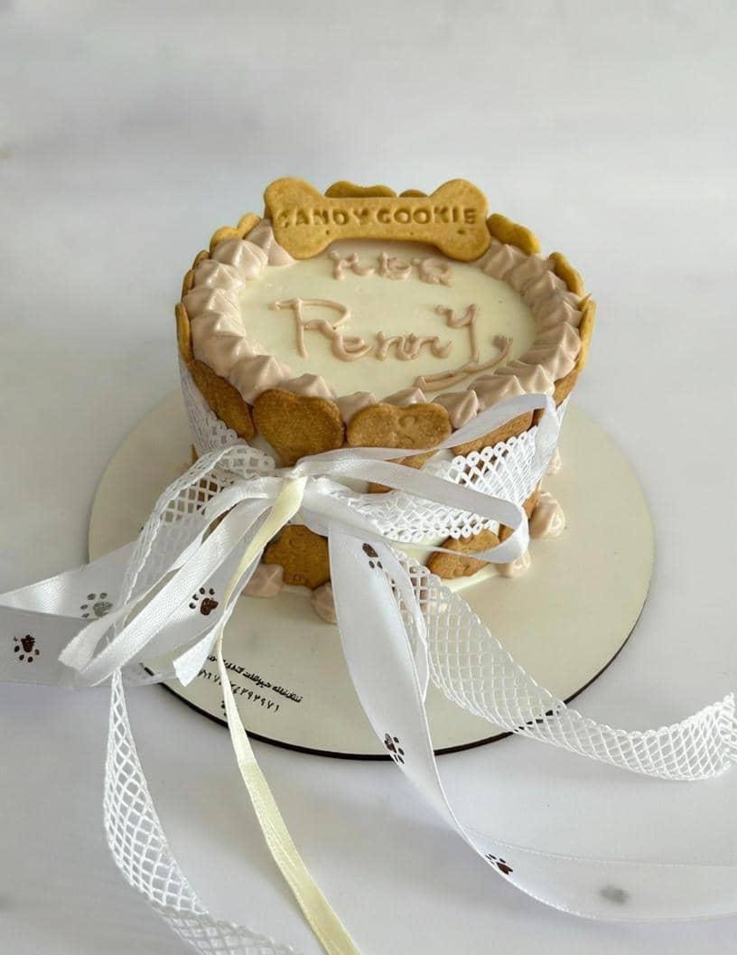 کیک تولد پت مدل دایره با دیزاین کوکی استخوانی کندی کوکی Candy Cookie
