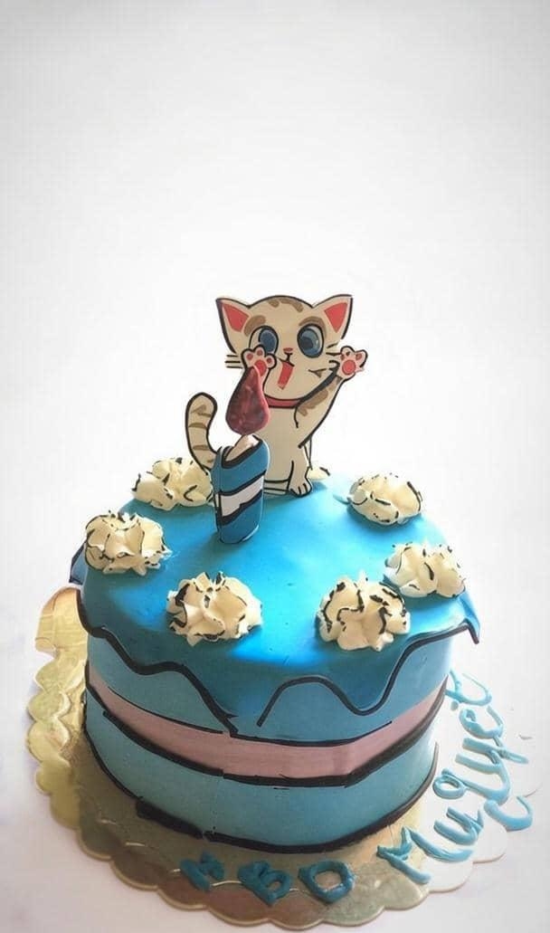 کیک تولد پت مدل دایره با دیزاین کارتونی و فیگور گربه کندی کوکی Candy Cookie