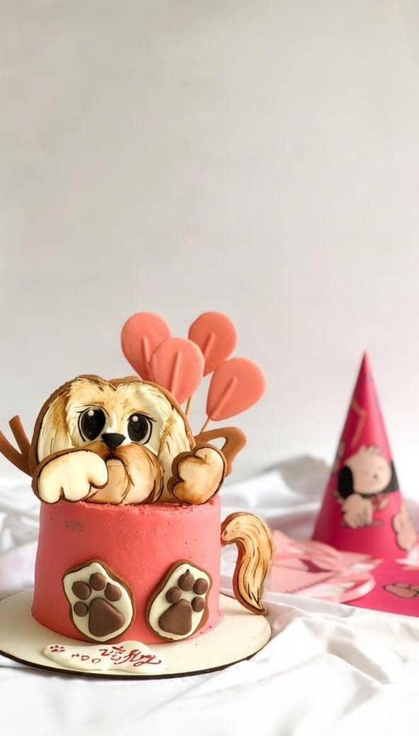 کیک تولد پت مدل دایره به همراه طراحی چهره پت پنجه دار کندی کوکی Candy Cookie