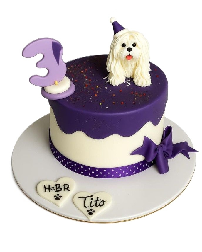 کیک تولد پت مدل دایره با روکش فوندانت به همراه فیگور پت کندی کوکی Candy Cookie