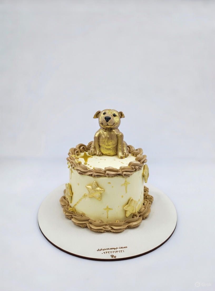 کیک تولد پت مدل دایره طرح ستاره به همراه فیگور پت کندی کوکی Candy Cookie