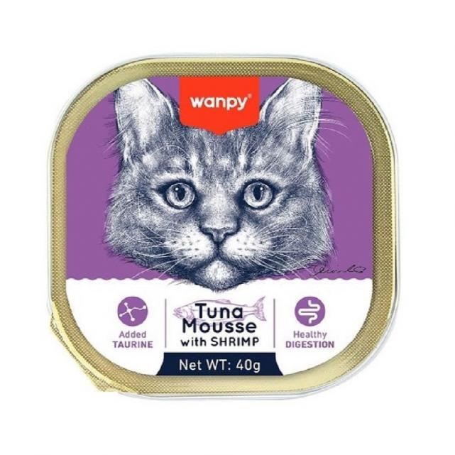 ووم گربه ونپی انگلیسی نویس با طعم ماهی تن و میگو Wanpy Tuna Mousse With Shrimp وزن 40 گرم