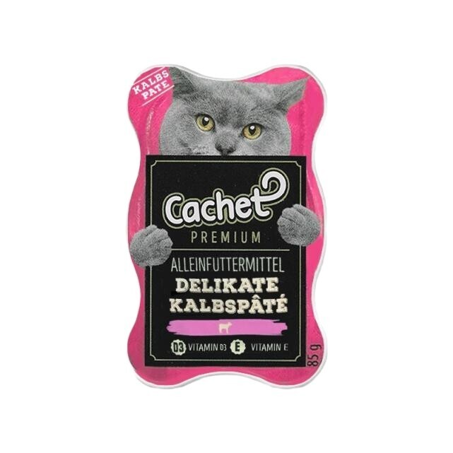 • ووم گربه پریمیوم پته کچت با گوشت گوساله Cachet premium Delikate With Beef وزن 85 گرم