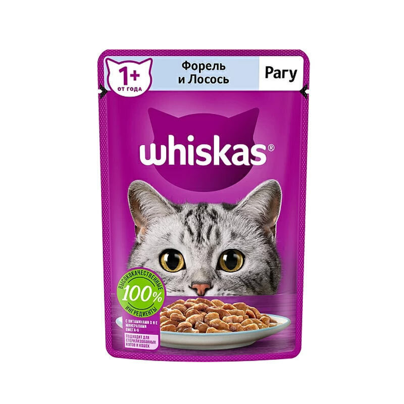 پوچ گربه ویسکاس با طعم خورش ماهی آزاد و سالمون WhiskasTrout & Salmon Stew وزن 75 گرم