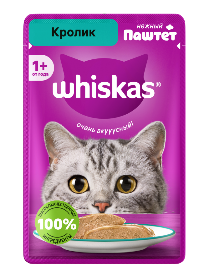 پوچ گربه ویسکاس با طعم گوشت خرگوش پته Whiska Rabbit وزن 75 گرم