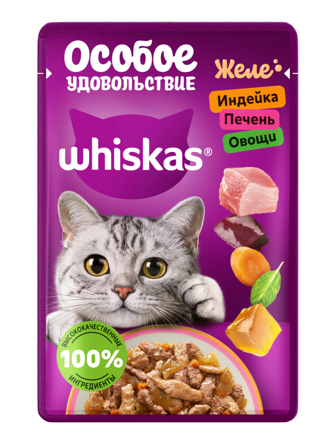 • پوچ گربه ویسکاس مدل میکس با طعم گوشت بوقلمون، جگر و سبزیجات Whiskas Mix Turkey & Liver & Vegetables Special delight وزن 75 گرم