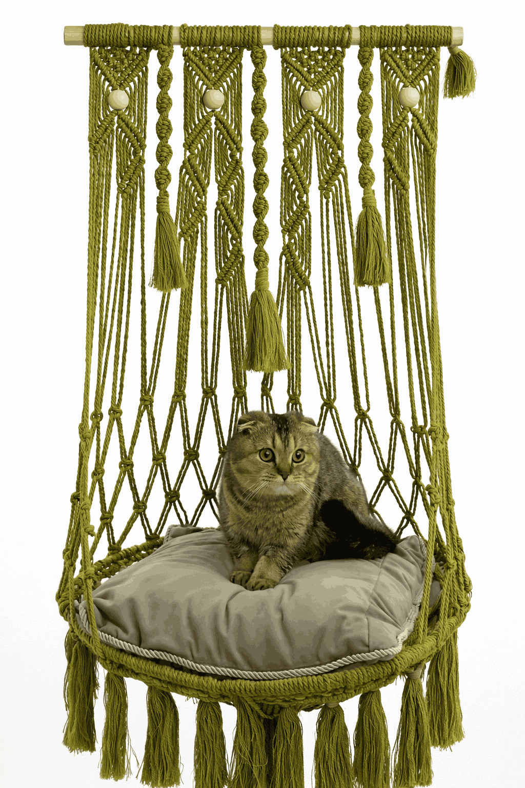 • تاب سگ و گربه مکرومه دست بافت کد 04 Handwoven Pet Swing قطر 50 سانتی متر