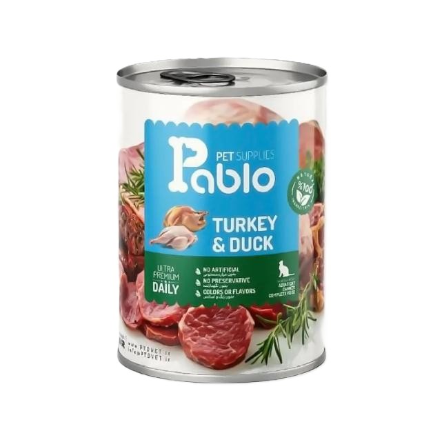 کنسرو غذای گربه پابلو طعم اردک و بوقلمون مدل نچرال Pablo Natural Cat food وزن ۴۰۰ گرم