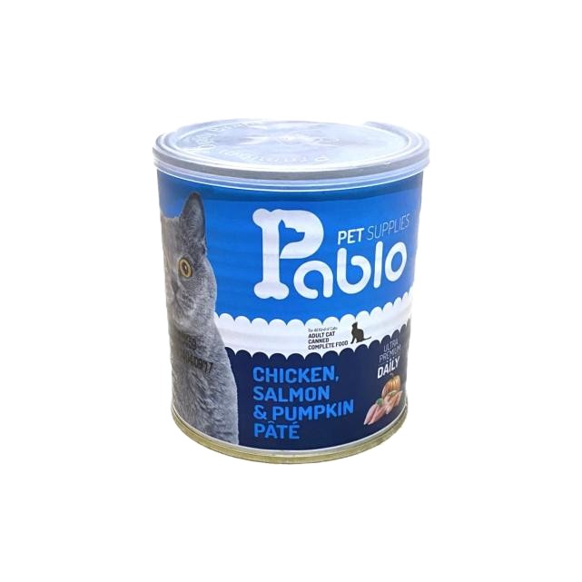 کنسرو غذای گربه پابلو طعم پته مرغ و سالمون و کدو حلوایی Pablo with Chicken and and Salmon وزن 8۰۰ گرم