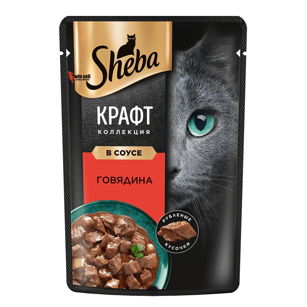 پوچ گربه شبا روسیه طعم گوساله در سس Sheba with beef وزن 75 گرم