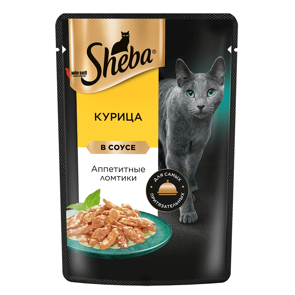 پوچ گربه شبا روسیه طعم مرغ در سس Sheba with chicken وزن 75 گرم