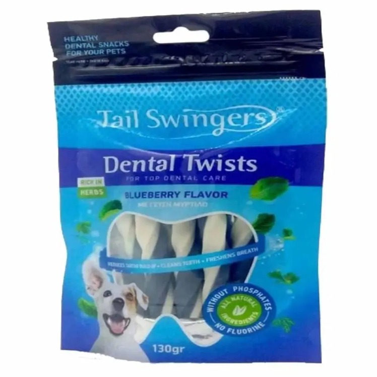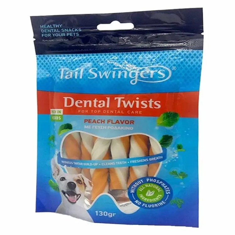 تشویقی سگ تیل سویینگرز مدل دنتال گرهی با طعم گوشت گاو Tail swingers Dental Twists وزن 130 گرم