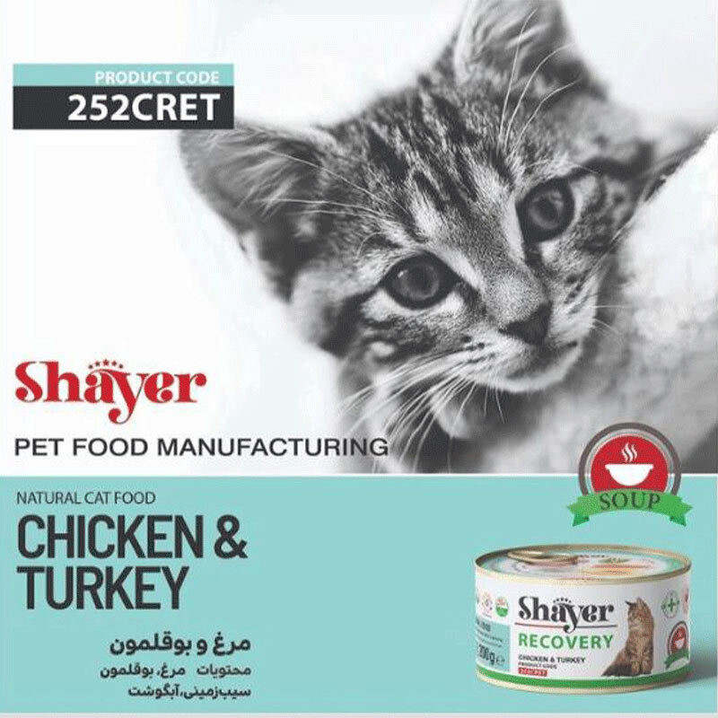 کنسرو ریکاوری گربه با طعم مرغ و بوقلمون شایر Shayer Soup With Chicken & Turkey وزن ۲۰۰ گرم