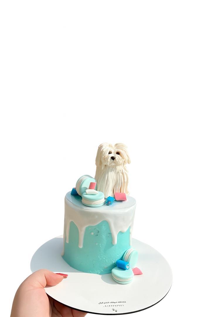 کیک تولد پت مدل دایره با دیزاین ماکارون و لاوا به همراه فیگور پت کندی کوکی Candy Cookie