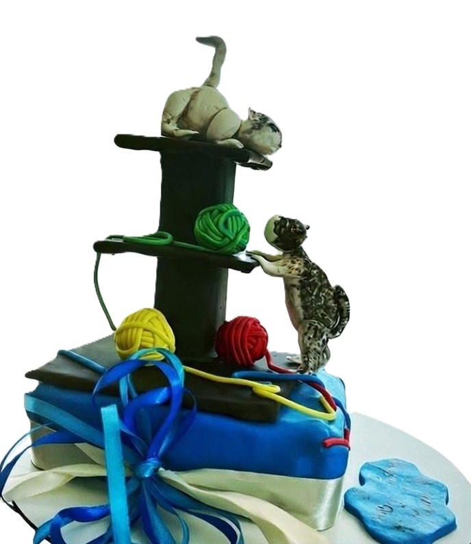 کیک تولد پت مدل چند طبقه طرح گربه و کاموا کندی کوکی Candy Cookie